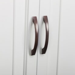 - Spotless white finish combined with clean lines and rubbed bronze finish door pulls , making this bathroom cabinet storage simple and classy.