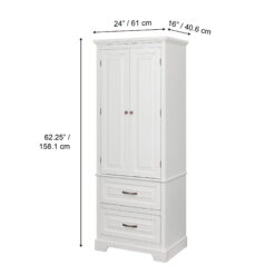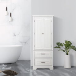 - Style: This tall storage cabinet with perfect proportion features in elegant and modern classic white finish style. Thanks to its neutral white hue, this clean-lined design is sure to blend with any existing ensemble, suitable for all styles and designs of bathroom.