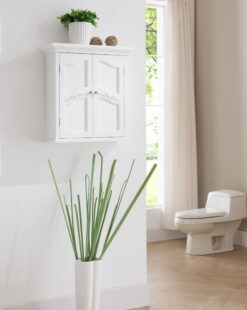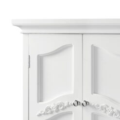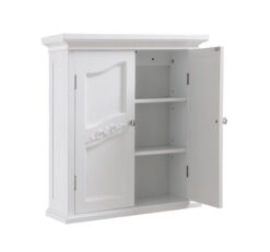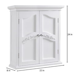 Upgrade your home storage while adding classic style with the Teamson Home Versailles Wooden Wall Cabinet with 2 Shelves. This decorative cabinet features a white finish with a crown molded top, metal knobs, and engraved doors for a timeless addition to your space. The 2 included adjustable shelves make this cabinet functional and customizable to suit your storage needs. Constructed from durable engineered wood, this storage unit is built to provide you with long-lasting organization. Easy, step-by-step instructions and all of the hardware needed for installation are included for quick assembly. Purchase this stylish wall cabinet alone or with other items from the Versailles collection for a cohesive, updated look. The Teamson Home Versailles Wooden Wall Cabinet with 2 Shelves measures 8″ x 22″ x 24″ to provide accessible storage without taking up too much space in your living area or bathroom.