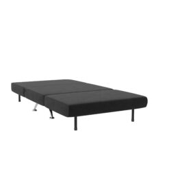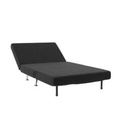 - Seat cushion opens to convert into a chaise lounger and the backrest folds down to create a bed. Extra fold out legs are included to provide additional support while in lounging or sleeping position.