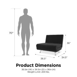 - Product dimensions: Sitting: 34.5’l x 36.5’L x 36’H. Sleeping: 75’L x 36.5’W x 11’H. Weight limit: 200 lbs. Net weight: 50.5 lbs. Shipping: 76’L x 38’W x 5’H. Gross weight: 60 lbs.