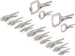 - Includes 2-pc. locking c-clamp: 6 inch, 11 inch; 2-pc. swivel pad locking c-clamp: 6 inch, 11 inch; 3-pc. curved jaw locking pliers: 5 inch, 7 inch, 10 inch; 3-pc. straight jaw locking pliers: 5 inch, 7 inch, 10 inch; 2-pc. long nose locking pliers: 6 inch, 9 inch; 2-pc. deep bite round jaw locking pliers: 7 inch, 10 inch