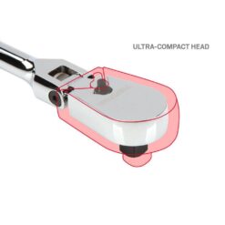 With a 90-tooth gear that produces a working swing arc of just 4°, TEKTON ratchets don’t need much room to operate. Smaller than “low profile”, their ultra-compact heads are reduced in every dimension-height, width and length-allowing them to slip into tighter spaces than other ratchets. The polished exterior has a chrome plated finish that’s corrosion-resistant and easy to wipe clean.
