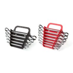 - Includes wrench holders with space-saving folding handles and nonslip grippers to lock in wrenches