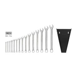 - 15-piece inch combination wrenches 1/4 in., 9/32 in., 5/16 in., 11/32 in., 3/8 in., 7/16 in., 1/2 in., 9/16 in., 5/8 in., 11/16 in., 3/4 in., 13/16 in., 7/8 in., 15/16 in., 1 in.