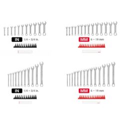 - 14-piece, metric combination wrenches: 6, 7, 8, 9, 10, 11, 12, 13, 14, 15, 16, 17, 18, 19 mm