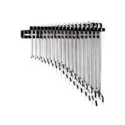 A complete series of every size from 1/4 in. to 1-1/4 in., the TEKTON 19-Piece. Combination Wrench Set keeps you organized with a wall-mounted, powder-coated, 12-Gauge steel wrench hanger. Open ends are angled 15° and box ends are designed to grip flat sides of fastener heads, not corners, to prevent round-off. Wall hanger has 3 in. slots cut through the bottom to provide many mounting options.