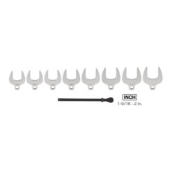 - 8-pieces, crowfoot wrenches: 1-9/16 in., 1-5/8 in., 1-11/16 in., 1-3/4 in., 1-13/16 in., 1-7/8 in., 1-15/16 in., 2 in.