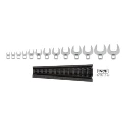- 13-piece crowfoot wrenches: 5/16 in., 11/32 in., 3/8 in., 7/16 in., 1/2 in., 9/16 in., 5/8 in., 11/16 in., 3/4 in., 13/16 in., 7/8 in., 15/16 in., 1 in.