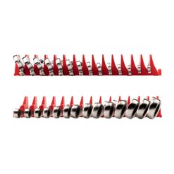 Each TEKTON reversible ratcheting combination wrench is permanently marked with both a high-visibility laser marking and a stamped marking for easy size identification. The 12-point box end fits multiple types of fasteners including 6-point, 12-point, and square. The 15° offset box end wrench geometry creates clearance for your fingers and makes it easier to reach around obstructions. The drive switch allows you to quickly switch ratcheting directions while you’re working. The wrench is abrasive-blasted to create a finely textured finish and then plated with a trivalent chrome process, ensuring that the finish won’t flake off or corrode over time. The set includes a modular slotted organizer that fits most toolbox drawers, keeping your ratcheting wrenches neatly arranged with consistent spacing.