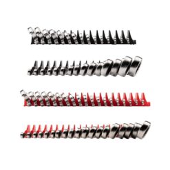 Each TEKTON reversible ratcheting combination wrench is permanently marked with both a high-visibility laser marking and a stamped marking for easy size identification. The 12-point box end fits multiple types of fasteners including 6-point, 12-point, and square. The 15° offset box end wrench geometry creates clearance for your fingers and makes it easier to reach around obstructions. The drive switch allows you to quickly switch ratcheting directions while you’re working. The wrench is abrasive-blasted to create a finely textured finish and then plated with a trivalent chrome process, ensuring that the finish won’t flake off or corrode over time. The set includes a modular slotted organizer that fits most toolbox drawers, keeping your ratcheting wrenches neatly arranged with consistent spacing.