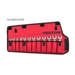 The TEKTON 12-pc. Stubby Combination Wrench Set is a complete series of every size from 8 to 19 mm. Short lengths and slim bodies make these wrenches easy to operate when there’s not much room to work. To reduce the working swing arc, the open end is angled 15 degrees so the wrench can be flipped over with each rotation to engage the fastener twice as often. The 12-point box end doubles the access angles of a 6-point. It’s offset 15 degrees, creating clearance for your fingers and extra space to slide past whatever might be in the way. To prevent round-off, it contacts and applies force to the flat sides of fastener heads rather than the corners. The wrenches are compactly organized in a premium roll-up storage pouch with a tailored cover that keeps them from sliding out when you’re on the move. To prevent scratches on finished surfaces, the pouch has fabric hanging loops rather than metal grommets.