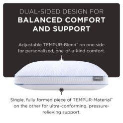 The TEMPUR-Cloud Hybrid pillow offers the perfect balance of comfort and support. Experience the dual-sided comfort and support of TEMPUR-Material with a single, fully formed piece on one side for ultra-conforming, pressure-relieving support, and an adjustable blend on the other for personalized, one-of-a-kind comfort. Great for all sleep positions.