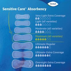 Tena, trusted by millions of women worldwide, continues to keep your intimate skin a priority. Tena Sensitive Care Maximum Regular Incontinence Pads are now the first ever bladder weakness pads enriched with our SkinComfort Formula. Our skin friendly layer in combination with our soft and 100% breathable materials, help protect intimate skin. Our triple protection against bladder leaks odor and wetness, Duolock core, and cushiony foam side barriers offer skin comfort and security. Tena Sensitive Care Maximum Regular pads are designed for continuous heavy leakage and for women experiencing post-partum incontinence.