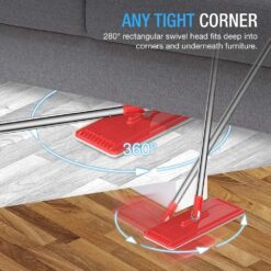 - 280° Swivel Head- Sleek design extends reach beneath and around furniture. Removes the dirt and grime from those hard to reach places! A 280° rotatable mop head gives access to various angles of cleaning and puts you at an advantage over the crumbs and dust on your kitchen floor.