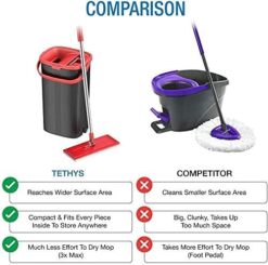 TETHYS Flat Floor Mop and Bucket Set for Professional Home Floor Cleaning System with Aluminum Handle/2-Washable Microfiber Pads Perfect Home + Kitchen Cleaner for Hardwood, Laminate, Tiles, Vinyl