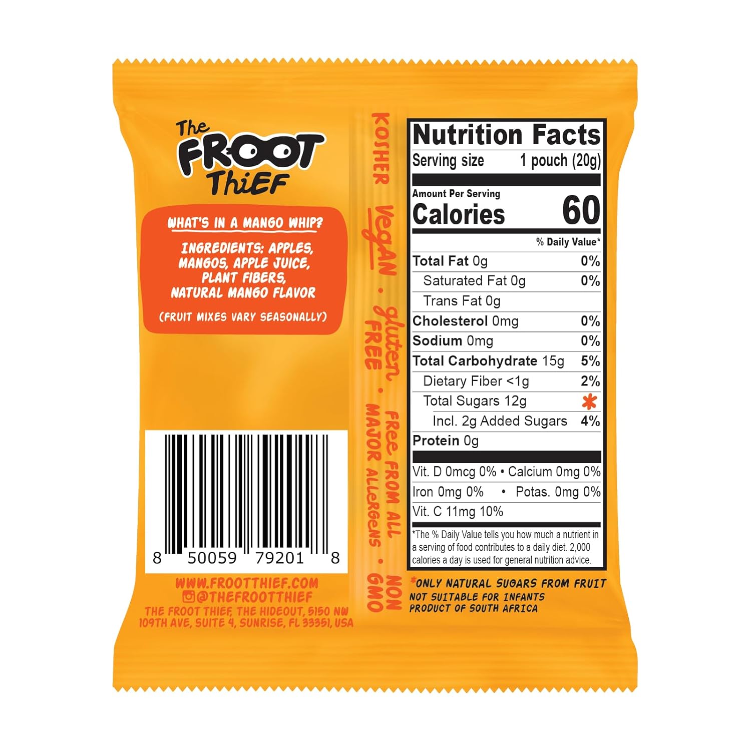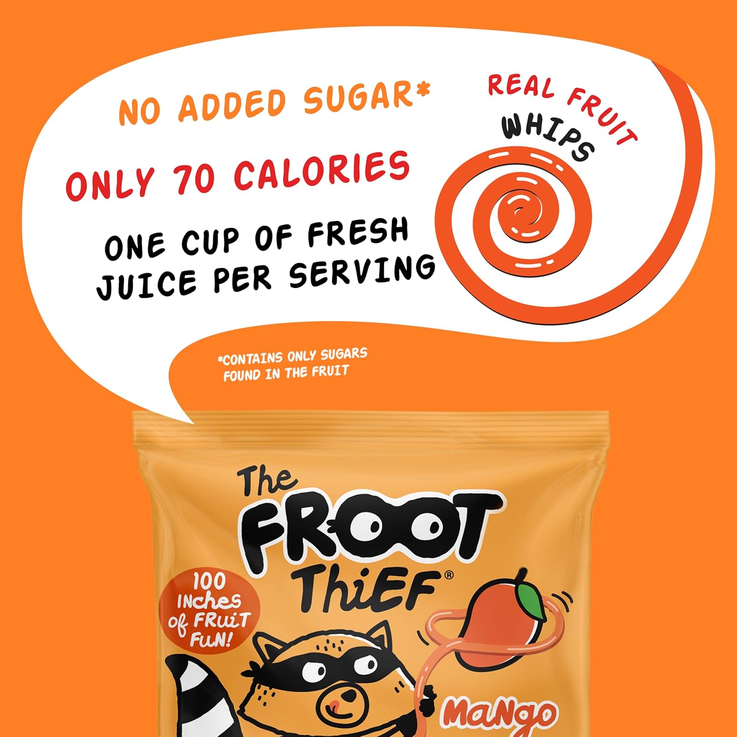 The FROOT Thief Real Fruit Snack Whips, Mango, Nut Free, Perfect for School Lunches and Back to School Snacks, Individual Bags Kids Snacks, 40 Pack