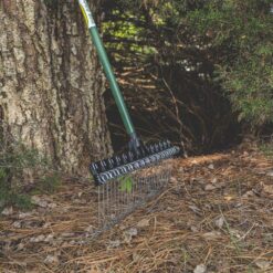 - Rake self-cleans with 1 pass over the ground when flipped over and pulled towards you, allowing leaves, thatch and needles to easily slip out of the tines