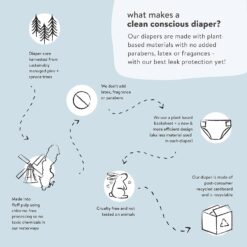 - Clean Conscious Diapers are designed with safe plant-based materials, a wetness indicator (so you know when it’s time for a fresh one), enhanced blowout protection, and advanced absorption for dry, happy babes