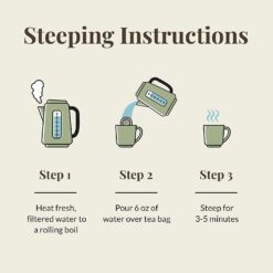 - STEEPING INSTRUCTIONS: Simply heat fresh, filtered water to a rolling boil. Then pour 6 oz water over tea and steep for 3-5 minutes.