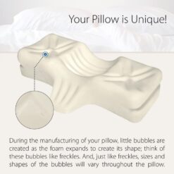 The unique nontoxic, nonallergenic, molded foam design includes three distinct areas to help reduce neck pain and stiffness. The gentle incline of the wedge extension supports the upper spine, the firm, cervical contour supports the neck, and the contoured head rest, with airflow channels, helps keep the head level. Both outside edges of the pillow are designed for side sleeping. Our unique molded foam creates a firm foundation with a surface that is soft to the touch. This allows for a comfortable yet supportive night’s sleep.