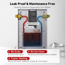 - [Leak Proof & Maintenance Free] – The first to use cast aluminum heating chamber, Heating element separated from water lines to prevent water leaking and scale & corrosion on heating element, ensuring high heating efficiency and extending usage life span
