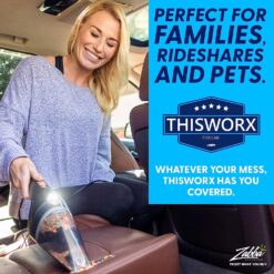 ThisWorx Car Vacuum Cleaner – Car Accessories – Small 12V High Power Handheld Portable Car Vacuum w/Attachments, 16 Ft Cord & Bag – Detailing Kit Essentials for Travel, RV Camper, White Corded