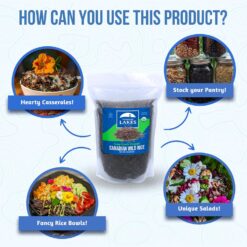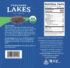Thousand Lakes Canadian Organic Premium Wild Rice is harvested from pristine, wilderness lakes in the pre-Cambrian shield of northern Canada. The only ingredient is wild rice! No preservatives, salt, or other rices added. Our Canadian wild rice is certified organic by MCIA. Our Premium wild rice and is delicious on its own or makes a great addition to soups, casseroles, stuffings, and other gourmet dishes. Use 1 cup (about 0.4 pounds) of uncooked wild rice to make 4 generous portions. Used for soups, stews, and casseroles, as well as side dishes, stuffing, entrees, and salads. Sold in a convenient, resealable poly bag.