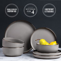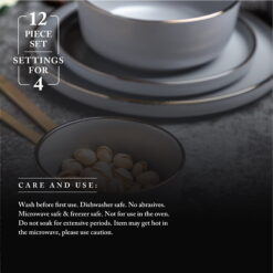 This unique 12 piece dinner set accommodates four place settings, complete with dinner plates, salad plates, and bowls, this set promises utility and elegance.