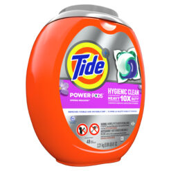 Designed to clean fabrics down to the microscopic level, Tide Heavy Duty 10X Hygienic Clean Power PODS removes both visible and invisible dirt from your garments, giving you a clean you can trust.Containing 10 concentrated cleaning actives, Tide Heavy Duty Hygienic Clean is not only the #1 Stain and Odor Fighter detergent*, it also gets between fibers to clean hidden dirt you didn’t even know was there.