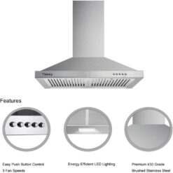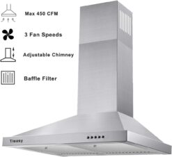 Tieasy Range Hood, Range Hoods 30 inch Stainless Steel, 450 CFM Kitchen Hood with LED Light Baffle Filters, 3 Speed Exhaust Fan Vent Hood