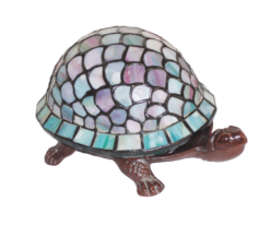 This Tiffany-Style Turtle Accent Lamp makes a pretty addition to your decor with its distinctive look. It features a colorful shell that complements a range of palettes with ease. The Warehouse of Tiffany lamp also has a bronze finish, adding a touch of sophistication. Display it on tables, shelves or bedside stands for simple illumination where you need it. The soft light and whimsical design is well-suited for a baby’s nursery or child’s bedroom. This item also makes a cute gift for a friend or loved one who adores terrapins.