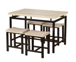 This attractive and contemporary 5-Piece Bowery Dining Set takes a modern twist on your home decor. The backless seating is captivating and can tuck neatly under the sleek table to conveniently keep it out of the way when not in use. This makes it ideal for use in smaller homes, apartments, and dorm rooms. Not only does this set work with any style, but it also creates a place for instant eat-in convenience. The 5-piece dining set in natural features metal frames in a black finish with particleboard and laminate. It is the ideal way to make the most of your breakfast nook, compact dining space, or even a work or craft room. The seats and tabletop all wipe clean, ensuring simple care and maintenance.