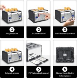 - 【Enjoy Diverse Taste】1.5” wide slot allow you to make bread, bagels, waffles and english muffins (No oily or watery food); 6 shade settings can also meet your different taste