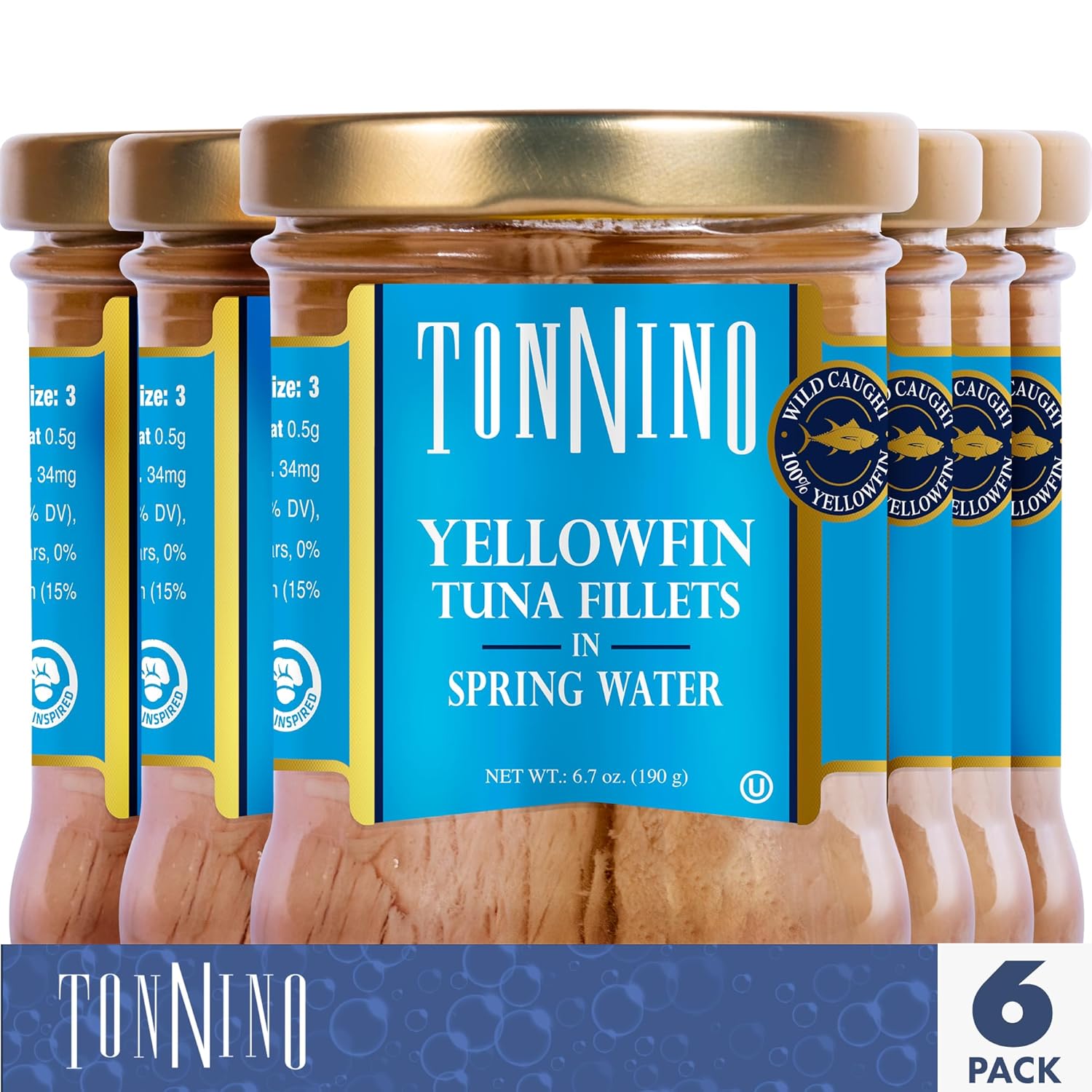 Tonnino Yellowfin Tuna in Water 6.7 oz – Gourmet 6-Pack: Omega-3, High Protein, Gluten-Free, Ready-to-Eat Tuna Packets for Tuna Salad, Tuna Fish Alternative to Salmon, Kosher, Perfect for tuna salad