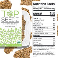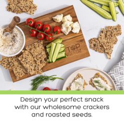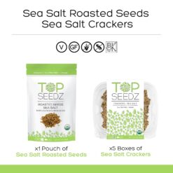 Have a hard time picking snacks for a party? Top Seedz crackers and seeds provide healthy snack options that are also super tasty! These vegan organic crackers and seeds are low in calories and packed with plant based protein, making them the perfect go-to snack for anyone, no matter your diet! With our deluxe seed crackers and roasted seeds bundle, you get the best value available. The Top Seedz Sea Salt Crackers are our flagship product. Each cracker is made with our special blend of all-natural seeds with a little bit of sea salt giving them that satisfying crunch no matter how you eat them. Dip them, top them, or eat them on their own, you’re sure to enjoy this healthy snack! Made with a 6-blend of seeds (Pumpkin seed, Sunflower seeds, Flax seed, Chia, Hemp and Sesame seeds) and arrowroot, the Top Seedz Sea Salt crackers have a texture that is crisp, light and keeps you coming back for more. It’s a flavor explosion so get them before they’re all gone! The Top Seedz Sea Salt Roasted Seeds are a perfect snack to put in a lunchbox, keep at your desk or bring on a road trip. With a hint of salt and that perfect crunch, you can make any yogurt, ice cream or even soup a bit more…magical! Top Seedz crackers are USDA certified organic gluten free crackers, and are made from simple, all natural vegan friendly ingredient, just like the Sea Salt roasted seeds. Not only are they all gluten free, but they’re also nut free and sugar free too!