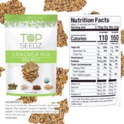 Now you can bake our flagship Top Seedz Sea Salt Crackers in your own kitchen! Each cracker is made with our special blend of all-natural seeds with a little bit of sea salt giving them that satisfying crunch no matter how you eat them. Dip them, top them, or eat them on their own, you’re sure to enjoy this healthy snack! Made using a proprietary seed mix, including sesame seeds, sunflower seeds, pumpkin seeds, flax seeds, arrowroot, and sea salt, our Top Seedz crackers are certified organic and gluten free, nut free and grain free too! Top Seedz crackers provide a healthy and nutritious snack option that are also super tasty! These keto friendly vegan organic crackers are low in calories and packed with plant based protein, making them the perfect go-to snack! Discover your new favorite snack by trying your homemade Top Seedz Crackers with your choice of topping! Swiss cheese and a slice of dried salami, some sliced apple with your favorite nut butter, smoked salmon with a touch of cream cheese and a sprig of dill, and so much more! The possibilities are endless! What’s better than a simple pack of healthy, protein filled, gluten free, nut free, grain free, organic crackers? Why, six packs of course! With the six-pack of 12-ounce Top Seedz Crackers Bake-At-Home Mix, you can share the deliciousness with your friends at a party, on a hike, or just have even more for yourself!