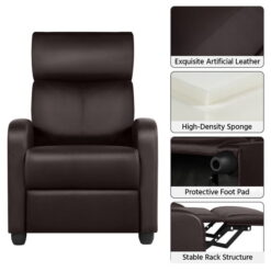 Sturdy home-use recliner: This adjustable recliner is constructed of strong composite wood frame, naturally soft rayon fibers, water-resistant and easy-to-clean PU & PVC leather. The robust recliner sofa is capable of holding up 265 lb.