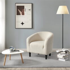The contemporary with traditional curved design merge for an elegant look, this boucle club chair set is an inviting addition to any seating ensemble. Constructed of a manufactured wood frame, soft-to-touch boucle covering and medium-firm foam seat, this barrel chair stands out from others for its quality and comfort. The ability to hold up to 300lb provides a strong and durable seat for all ages. The curved back and armrest introduce soft lines to your space and the chair offers a nice-looking spot to kick back and relax in the living room, study, or for commercial use in the café, hotel and suchlike.