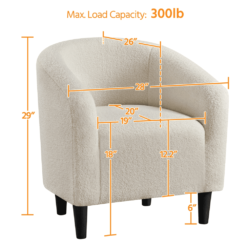 - Founded on a solid & manufactured wood frame, this club chair is padded with elastic foam fills and soft-to-the-touch polyester boucle upholstery. This sturdy and cute armchair can easily hold up to 300lb, which is perfect for all ages to use.