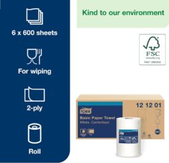 Tork Basic Centerfeed Paper Wiper White M2, High Absorbency, 6 x 600 Sheets, 121201