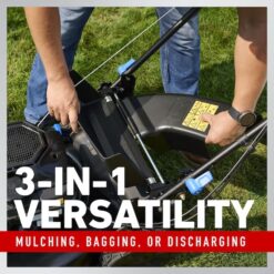 - 3-in-1 Versatility: Mulching, bagging or side discharging system (upon registration) for your mowing preference