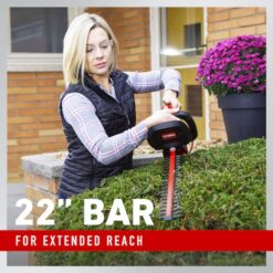 - 22-in bar with hardened steel blades provides durability and extended reach