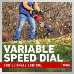 - Highest CFM of Toro’s Corded Blowers with air volume up to 725 CFM