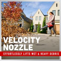 - Velocity nozzle concentrates airflow to effortlessly lift heavy piles of wet leaves and dense debris.