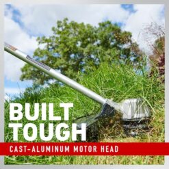 - Cast-aluminum motor head built to take a beating when you’re weeding