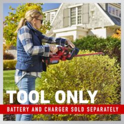 The Toro 60V Max 24-in Hedge Trimmer (Battery manufacturer rating = 60V maximum & 54V typical usage. Actual voltage varies with load) is two full feet of ferocious. Its powerful 60-volt max motor cuts through branches like butter. Our exclusive blade design funnels branches in and keeps them there until they’re sliced, diced, and done. And its dual-action cutting bar makes you twice as effective. Need to switch from horizontal to vertical trimming. No problem. Just rotate it and rock it. For extra protection, a dual-sided safety is accessible in any of the cutting positions. As part of the Toro 60V Max Flex-Force Power System, it’s got power like no other that commands a full line of tools. Count on it.