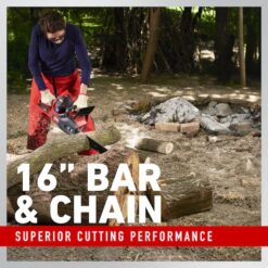 - A full 16 in bar and chain and pro-style tensioning for superior cutting performance.