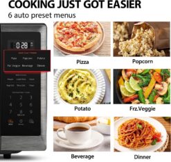 - 【6 Automatic Preset Menus】Small countertop microwave oven with 6 preset menu options for convenient cooking snacks, dinner, beverages and more.