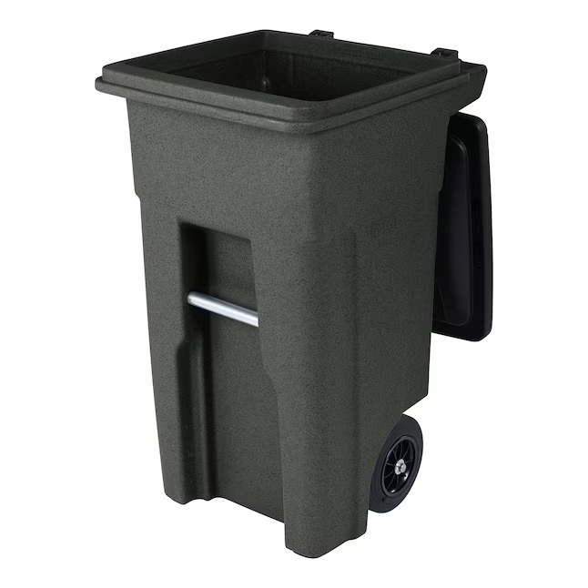 Toter’s 32-gallon trash cans have a long-lasting service life and are very durable. This can is designed to serve as either a waste bin or a recycling container. Toter cans are manufactured with Advanced Rotational Molding technology, which creates an impact-resistant can with superior durability. Toter trash cans are designed to keep working long after others fail – more than 2X longer. Transportation of the can is simple, no matter how full. This can is easy to tilt and roll from the garbage area to the waste collection area and back. The attached lid keeps contents securely inside. It is fully compatible with automated and semi-automated curbside collection pickup from waste collection trucks and mechanical lifters. Built with quiet-cap wheels that reduce noise when moving the can.